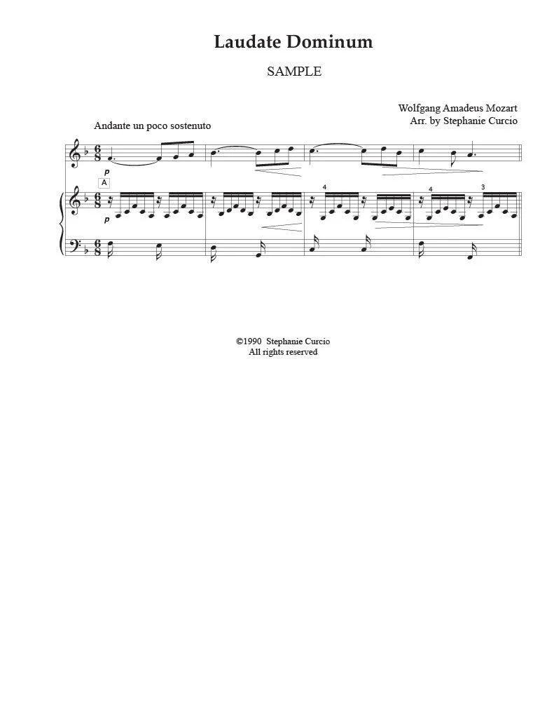 Beautiful piece from Vesperae Solennes de Confessore K.339 arranged for flute & pedal harp. Very effective and perfect for any type of church service, or general audience. Intermediate level. SEE SAMPLE BELOW.